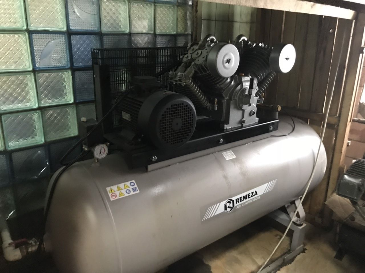 Провели диагностику и обслуживание поршневого компрессора Remeza 500LT100. Заменили фильтра и масло, настройку давления для производства заказчика.