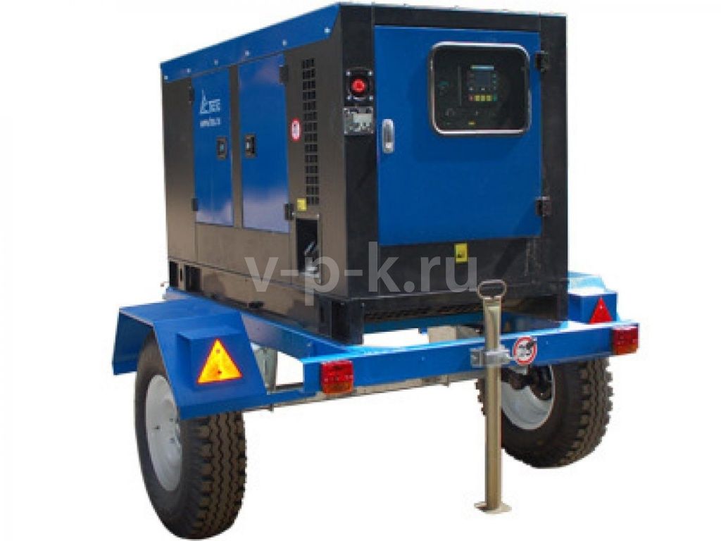дизельный генератор ТСС АД-60С-Т400-1РКМ5 в шумозащитном кожухе на прицепе 10208